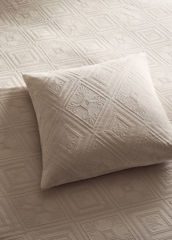 Size: 60x60cm. 100% Cotton. The cotton knit is very pleasant to the touch. Cool, soft, durable, breathable and versatile. Textured jacquard fabric. Geometric and floral design. Adds a sophisticated and cozy touch. Envelope closure. Filling not included. Coordinates with more products from the collection