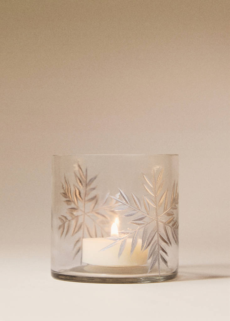 100% glass. Diameter: 7.75cm. Height: 7cm. This carved glass candle holder is an elegant decorative accessory that combines simplicity and refinement. The translucent finish allows the candlelight to filter through, creating a warm and inviting atmosphere. Available in two colours. Christmas Collection