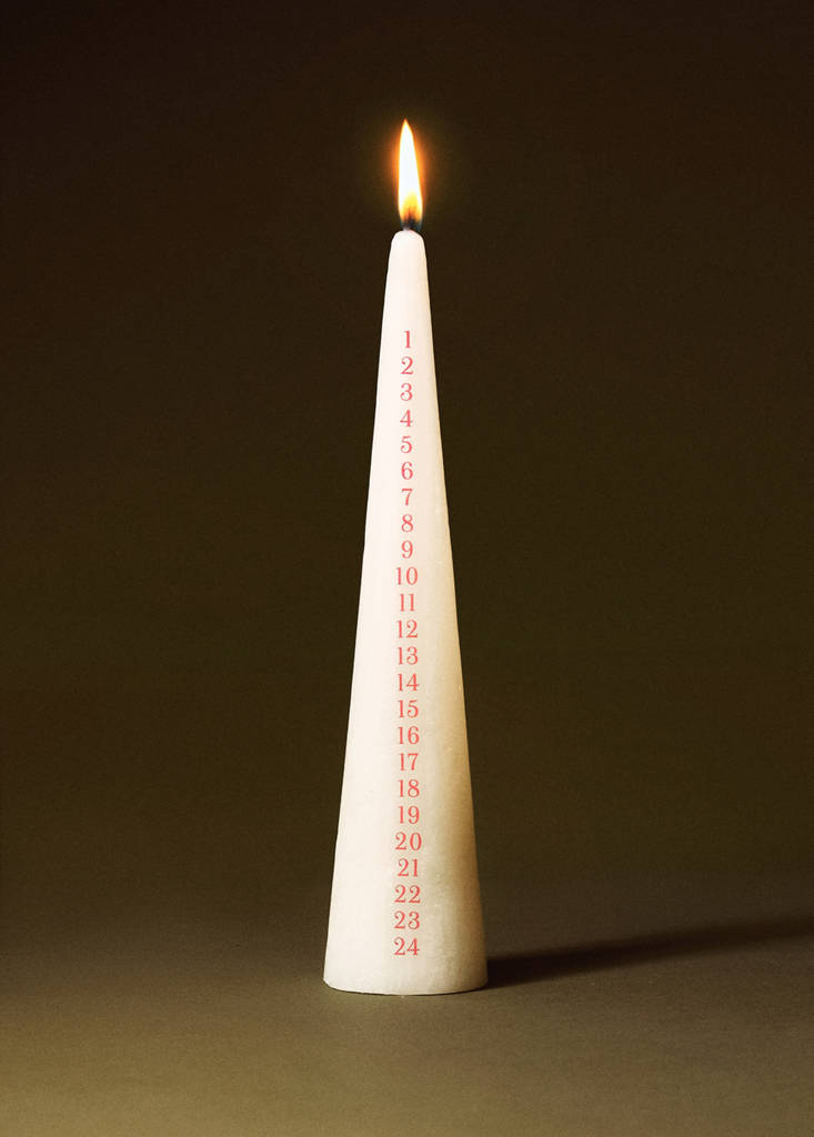 Paraffin wax. Size: 5x25cm. Its size and traditional design make this candle adaptable to different spaces. Decorative candle with calendar detail, ideal for referencing the advent calendar. Perfect for adding a traditional touch to your décor and family gatherings at Christmas. Christmas Collection