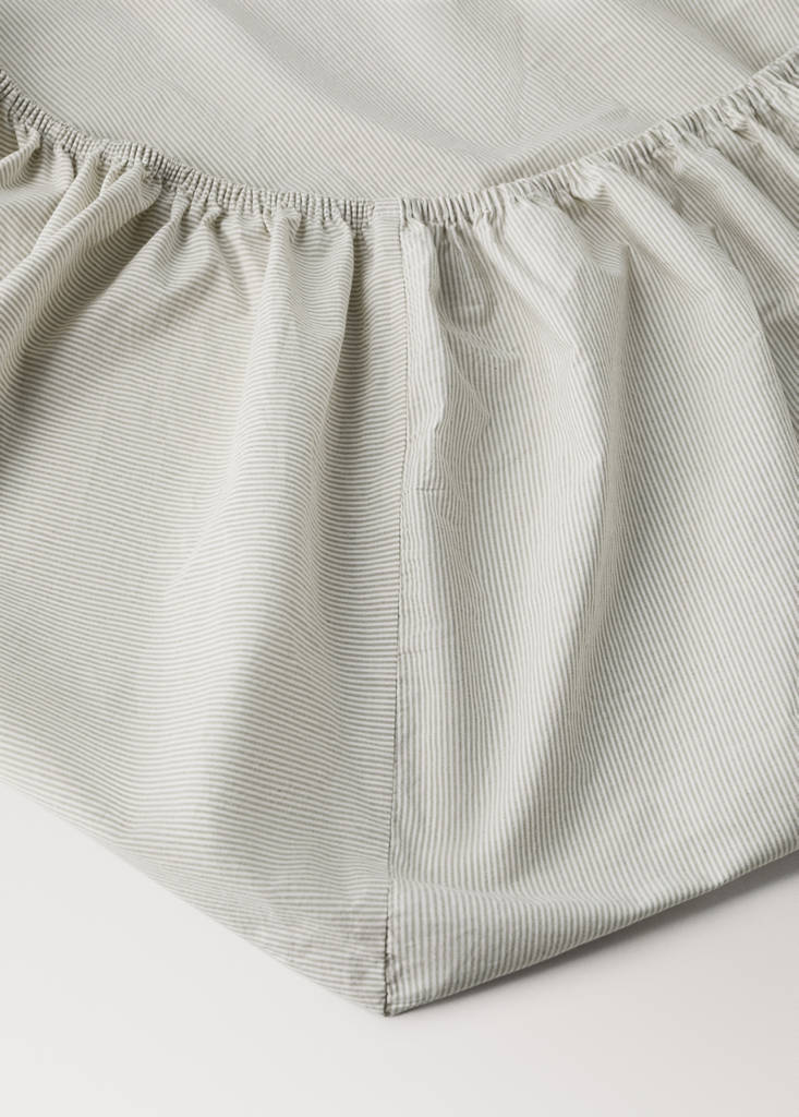 Fitted sheet cotton yarn-dyed Bed 90 cmCurrent price [1 299 Kč ]1 299 KčSelect a colourPastel GreenSelect your sizeSingle (90x200x30cm)AddAdd to your wishlistSee lookFree delivery to store100% Cotton. Size: 90x200 cm. Cotton poplin. Fine-stripe design. Soft and comfortable texture to the touch. Coordinates with more products from the collectionDetails, composition and careStore availability