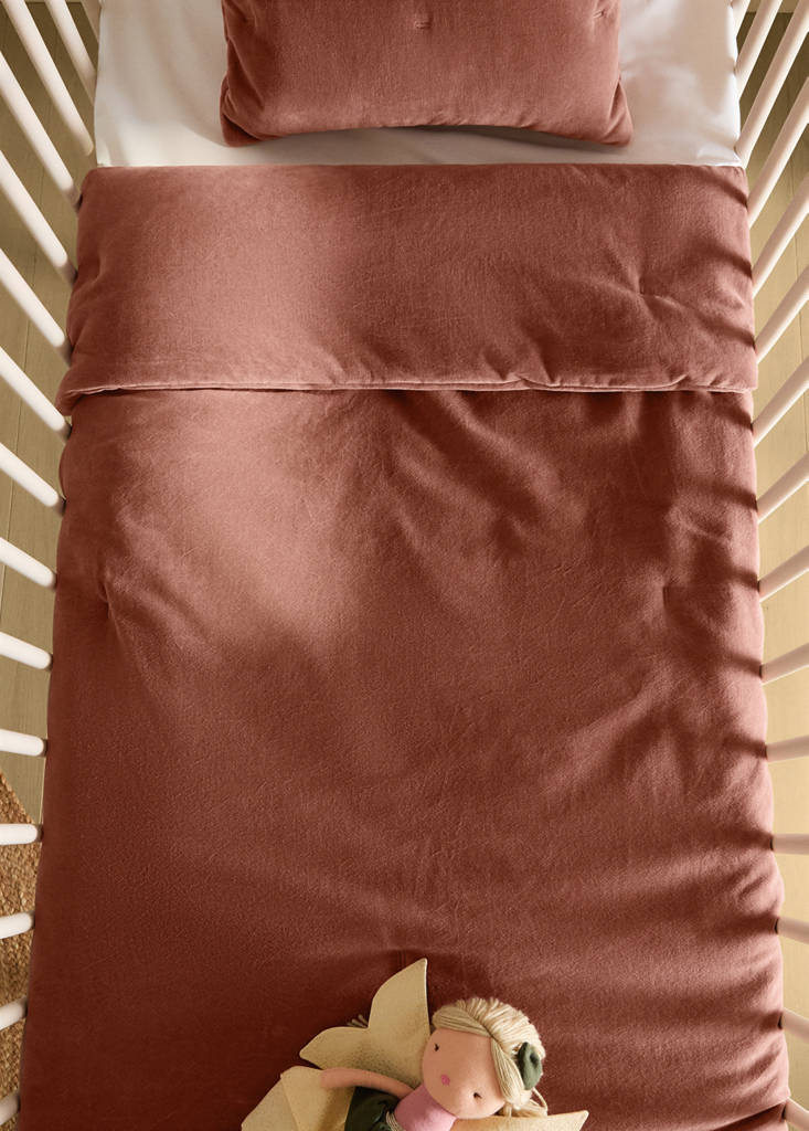 Garment-dyed velvet cotton bedspread for cot
