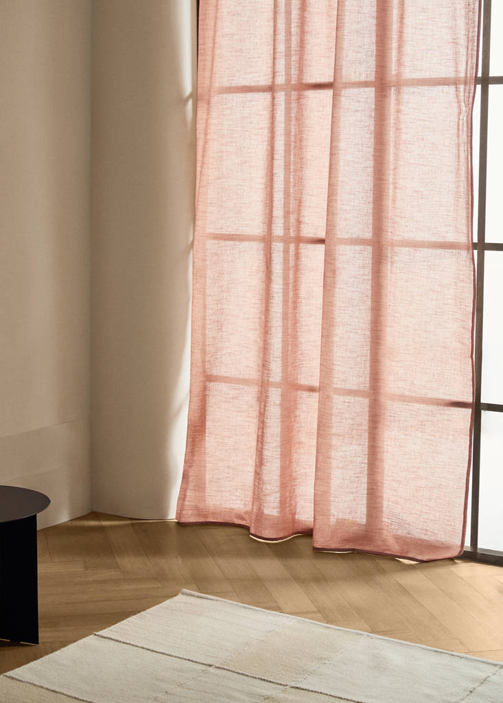 100% Cotton. Size: 145x260cm. Medium opacity. Ideal for subtly filtering light. Light melange effect. Upper part with a single loop. Hem finish. Sold by unit. Available in different colours. Online Exclusive. Rod curtain. 100% Linen