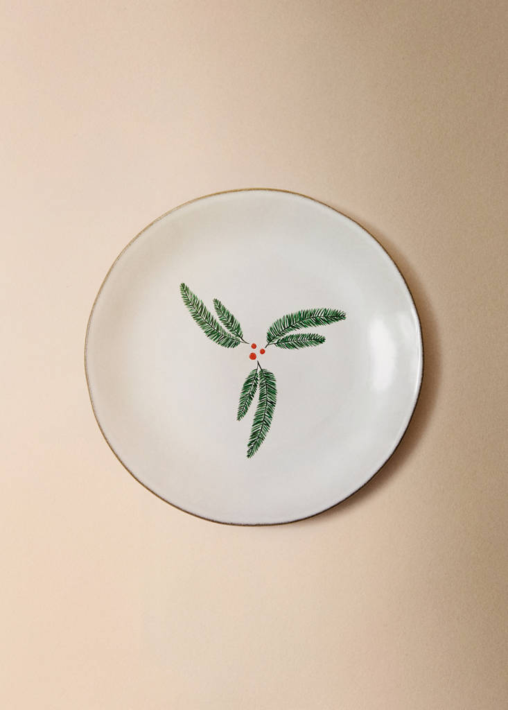 Dessert plate. 100% stoneware. Size: 23 cm. Hand-painted. Contrast edge. Elegant and minimalist design, ideal for any table. Microwave safe. Dishwasher safe. Complete your table with more products from the collection. Christmas Collection