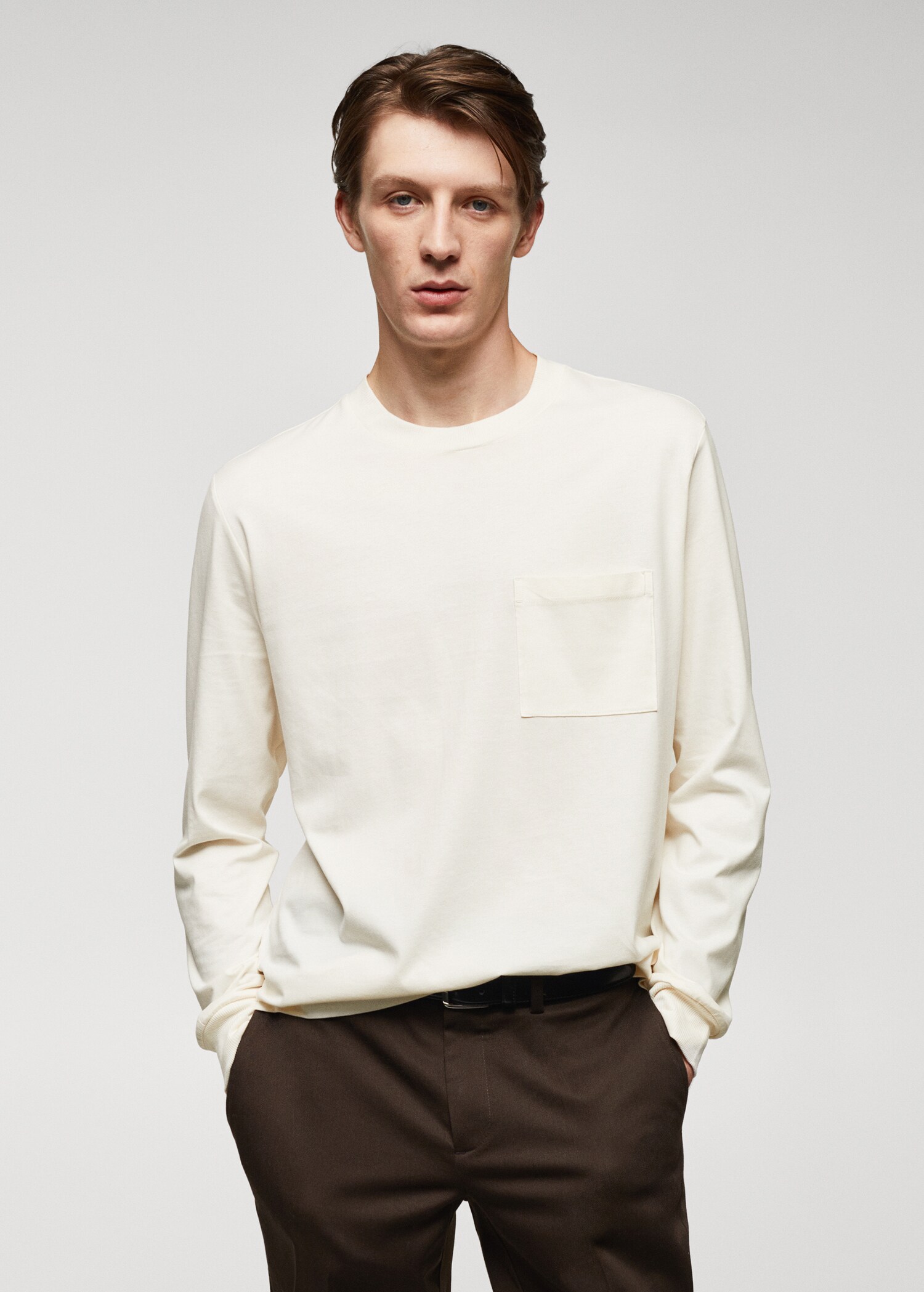 100% Cotton. Regular fit. Light fabric. Cable knit collar. Patch pocket on the chest. Long sleeve with elastic cuffs. Hem with side slits. The model is 190 cm tall and is wearing a size M.