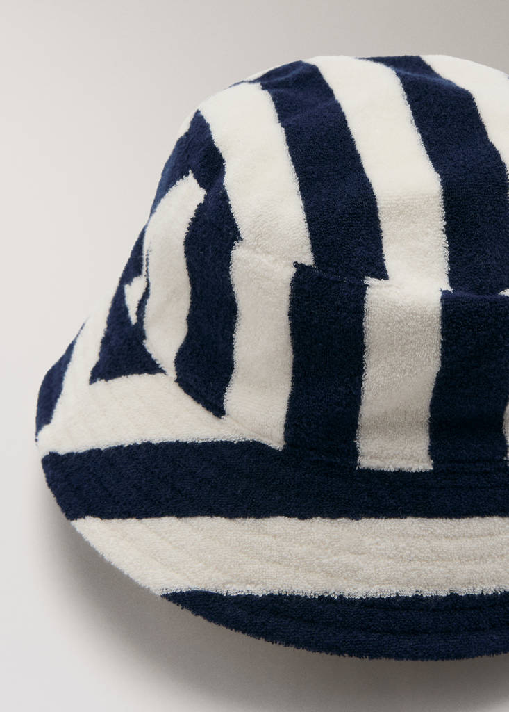 Striped terry cloth bucket hatCurrent price [799 Kč ]799 KčSelect a colourBlueSelect your sizeOne sizeAddAdd to your wishlistSee lookFree delivery to storeCotton fabric. Bucket design. Striped printDetails, composition and careStore availability