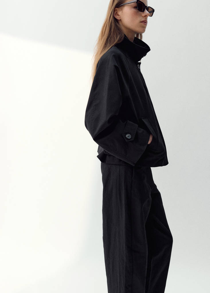 Linen and cotton blend fabric. Barrel style. High waist. Belt loops. Two side pockets. Hook and zip fastening. Online Exclusive. Inner lining. Total look