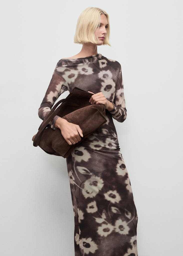 Midi-Design. Tailliertes Design. Blumenmuster. Asymmetrischer Kragen. Lange Ärmel. Drapiertes Detaill an der Taille. Ohne Verschluss. Innenfutter. Dieses Kleidungsstück ist Teil unserer Casual-Kollektion, die Sie stilvoll durch Ihren Alltag begleitet