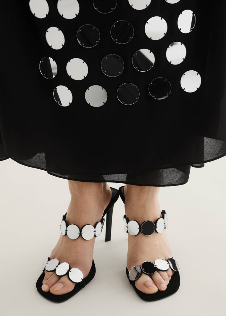 Das offene Design und die metallische XL-Pailletten-Applikation machen diesen Schuh einzigartig und elegant. Ideal, um Ihre Party-Looks in dieser Saison zu vervollständigen. 100% Leder. Applikation mit Metallic-Spiegeln. Stilettoabsatz. Absatzhöhe: 9,5 cm. Artikel aus der CAPSULE-Kollektion können innerhalb von 14 Tagen ab dem Versanddatum umgetauscht oder zurückgegeben werden. Design mit offener Ferse