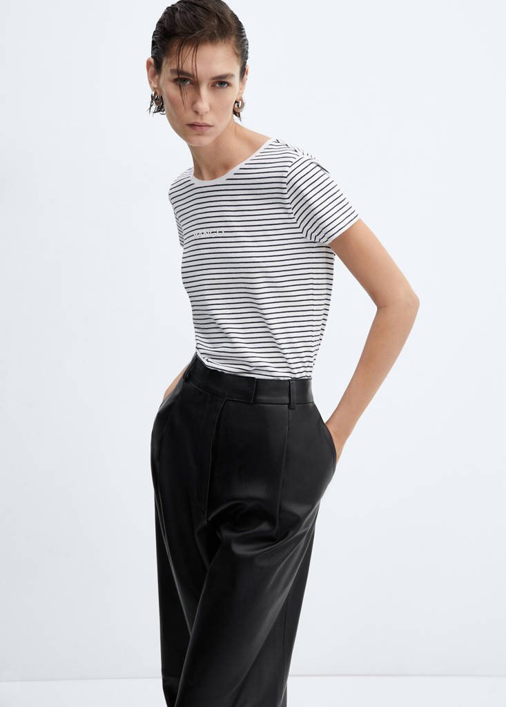 Baumwolle. Gerades Design. Aufgesticktes Logo. Rundhalsausschnitt. Kurze Ärmel. Ohne Verschluss. Logo-Detail. 100% Baumwolle. Streifendesign. Streifenmuster. Feinstrick. T-Shirt. Logo-Print. Ohne Verschluss