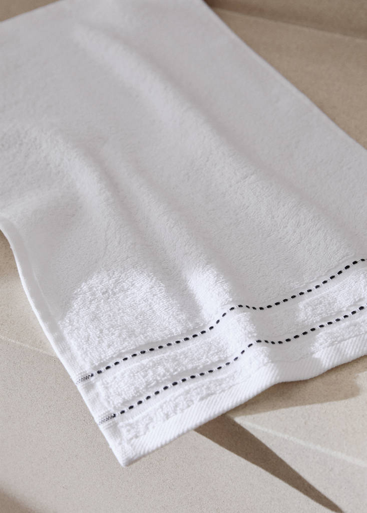 Größe: 30x50cm. 100% Baumwolle. Hohe Saugfähigkeit und atmungsaktiv für schnelles Trocknen. Aufgestickte Mini-Pünktchen. Angenehme und weiche Textur. Kombinierbar mit weiteren Produkten der Kollektion. Gewicht: 500 g/m2