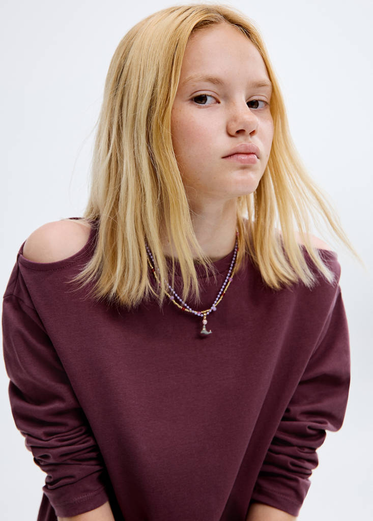 100% cotton fabric. Straight design. Plain design. Cut-out detail. Round neck. Long sleeves