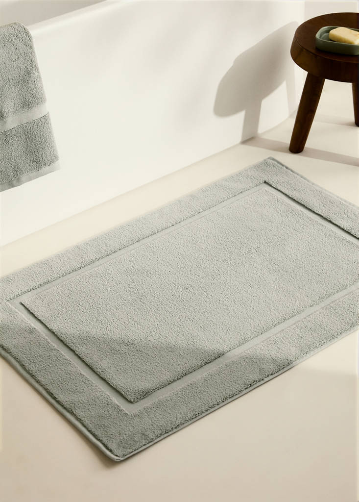 Bath mat. 100% Cotton. Grammage: 850 g/m2. Size: 60x90cm. Its modern design enhances any bathroom, combining softness and excellent absorption. Coordinates with more products from the collection. Available in different colours