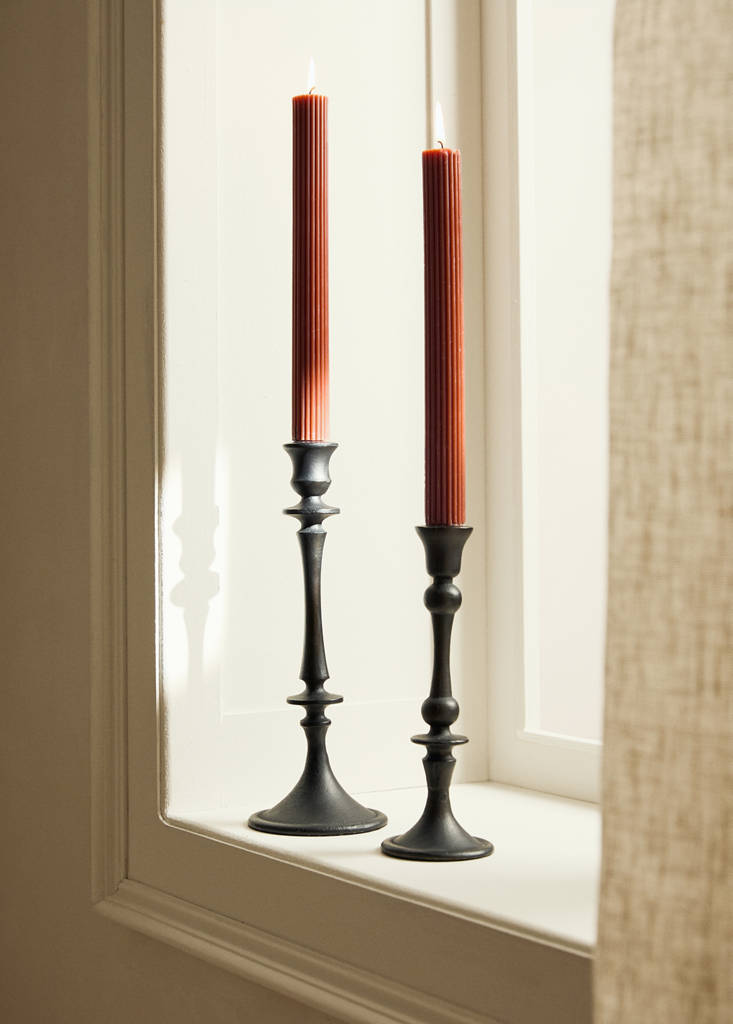 Paraffin wax. Height: 28.2cm. Width: 3cm. Diameter: 6.3cm. Pack of 2. Set of two decorative candles designed to add an elegant and sophisticated touch to any space. Made with high-quality paraffin wax, ensuring a uniform and long-lasting burn. Ideal for both decorative purposes and ambient lighting, and essential for creating a warm atmosphere in the home