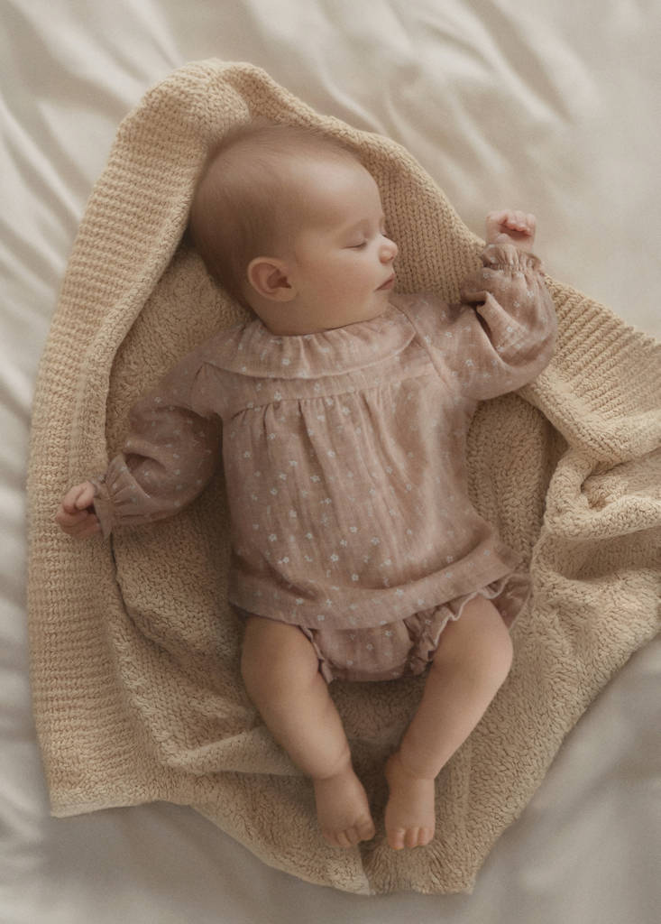 100% Cotton. Straight design. Floral print. Babydoll collar. Long puffed sleeves. Button fastening on the back section. Maternity Collection. The image is generated with artificial intelligence