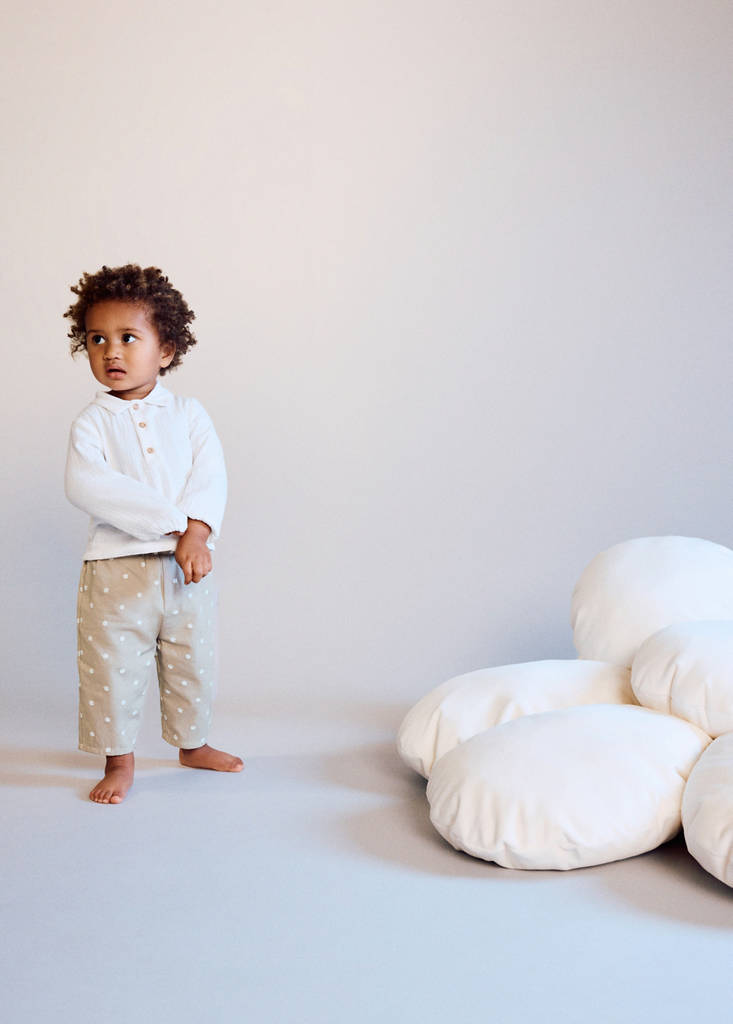 100% cotton fabric. Stretch fabric. Straight design. Long design. Elastic gathered waist. Flowered embroidery