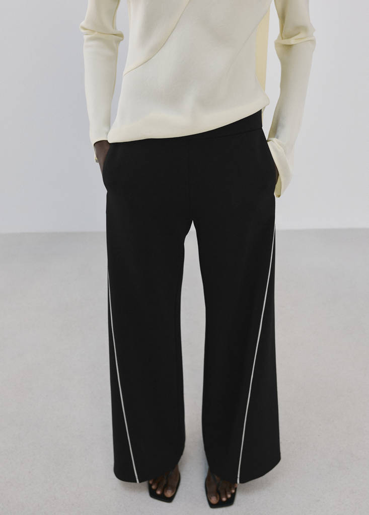 Diseño recto. Diseño largo. Raya lateral. Dos bolsillos laterales. Cintura elástica. Total look