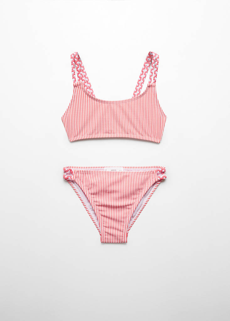 Colección baño. Estampado de rayas. Tirantes trenzados. Braguita clásica. Esta prenda también está disponible en la colección de Baby Girl. Summer camp