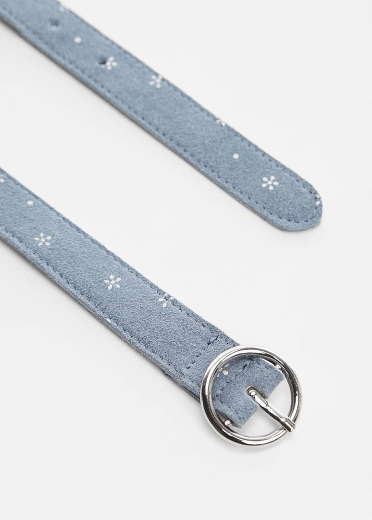 100% piel bovino. Estampado de flores. Hebilla metálica. Cierre de hebilla