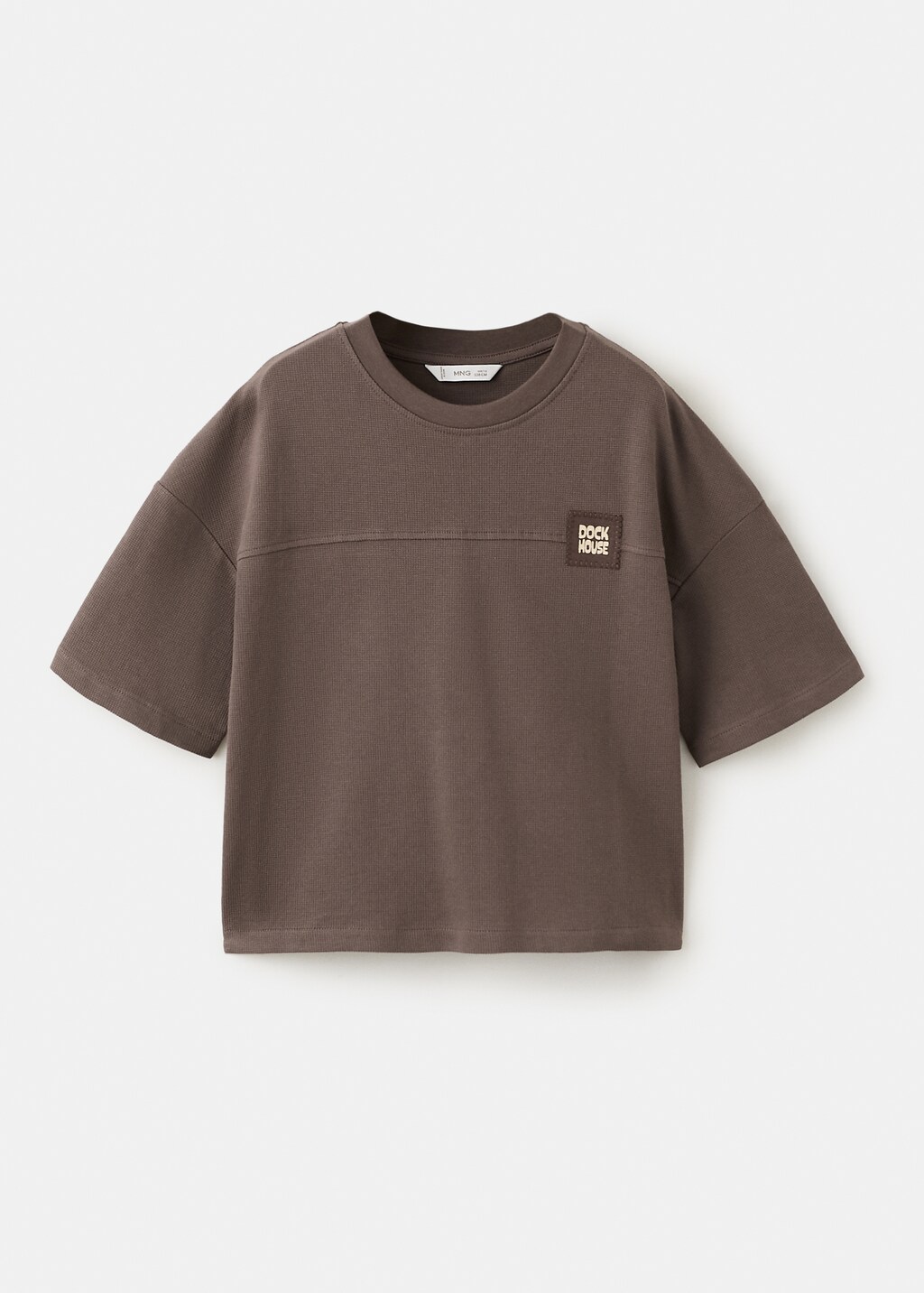 Tejido 100% algodón. Tejido con textura. Diseño recto. Cuello redondo. Manga corta. Etiqueta decorativa con texto.