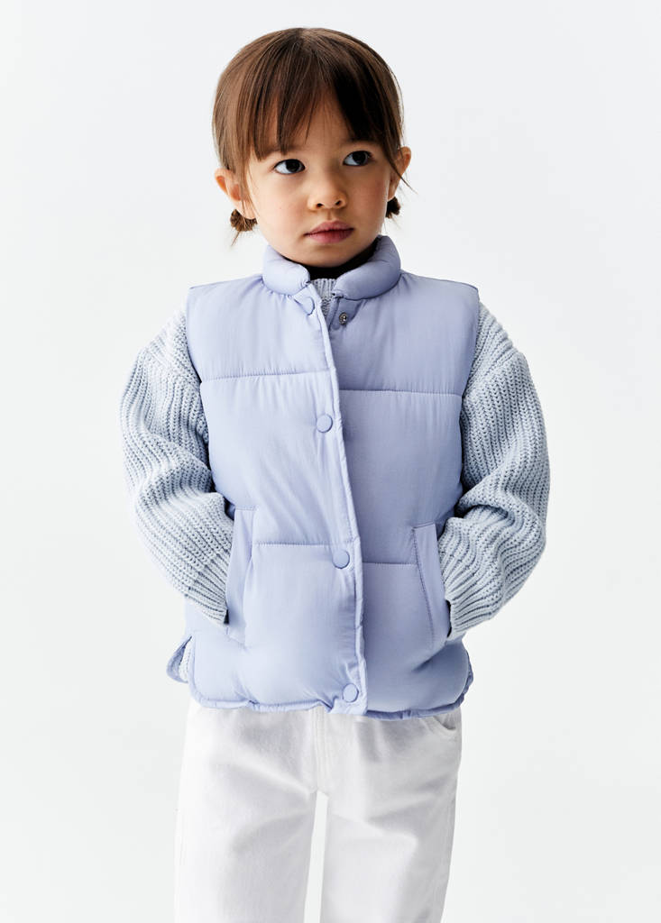 Diseño recto. Diseño acolchado. Dos bolsillos de solapa. Cuello redondo. Sin mangas. Cierre de botones. Cierre de botones a presión. Etiqueta interior para datos personales