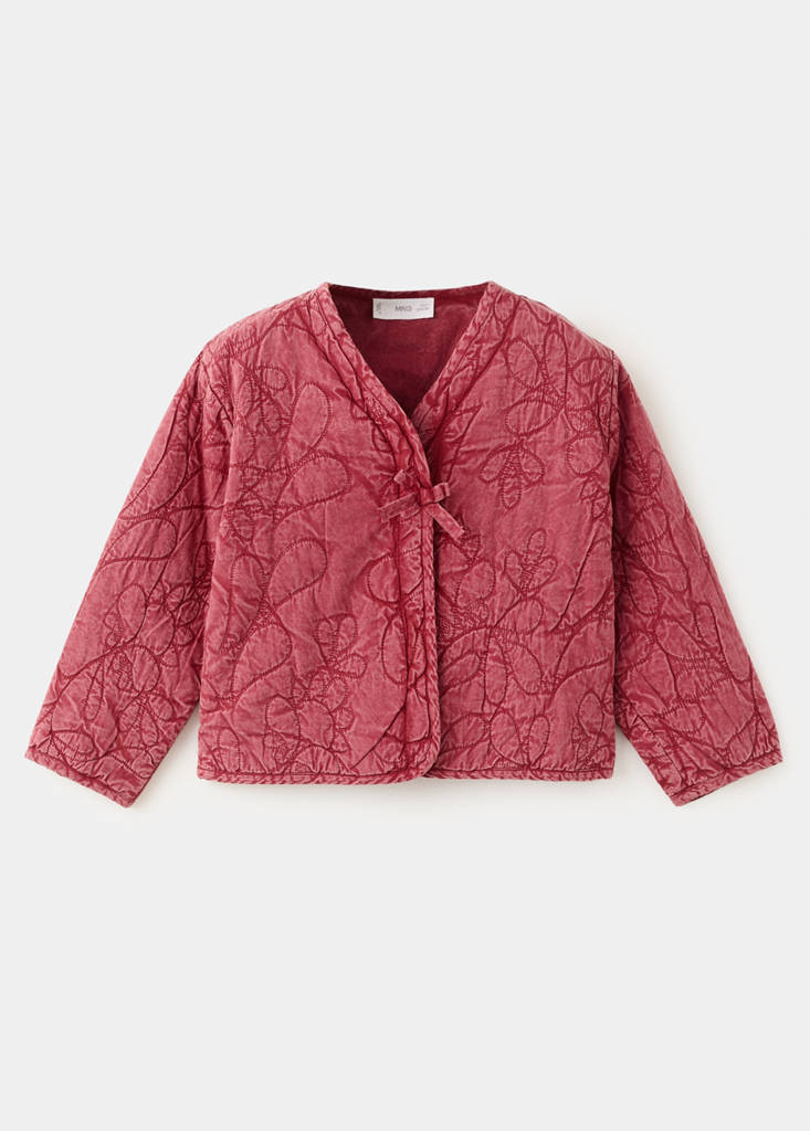 Tejido 100% algodón. Tejido acolchado. Diseño recto. Cuello pico. Manga larga. Cierre de lazo. Detalles bordados. Colección San Valentín.