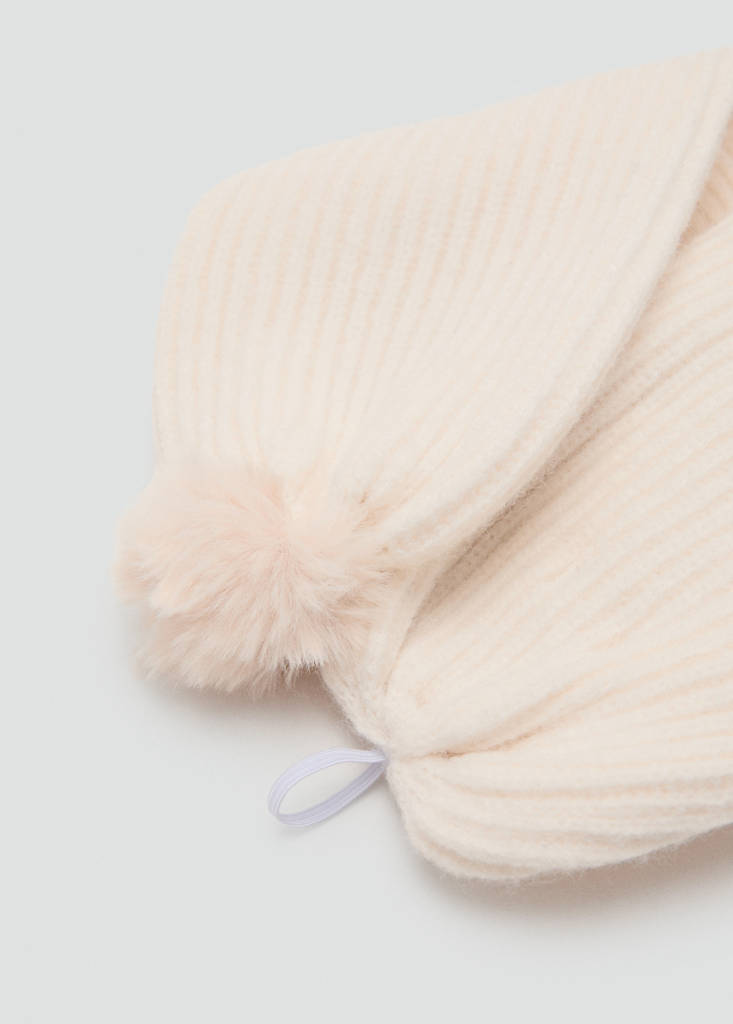 Tejido de punto. Detalle de pompón. Conjunto disponible. Esta bufanda tiene gorro a conjunto disponible.