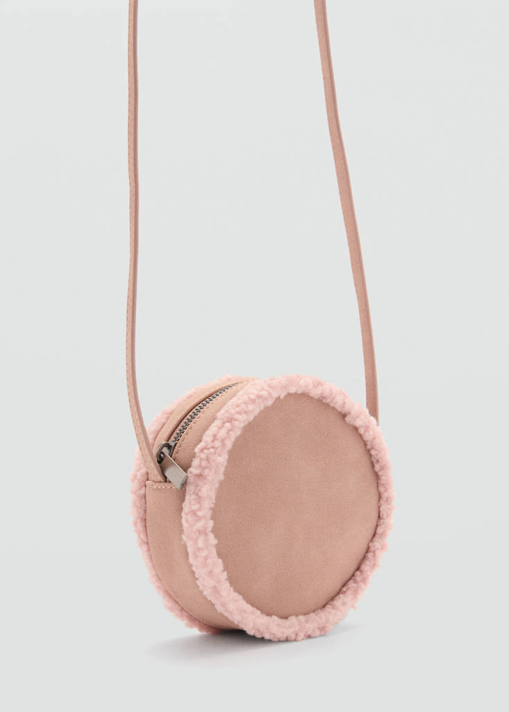 Detalle de borreguito. Diseño redondo. Asa larga. Cierre de cremallera