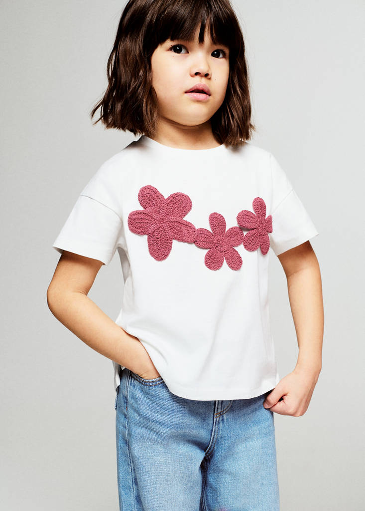 Tejido 100% algodón. Diseño recto. Cuello redondo. Manga corta. Detalles florales bordados.