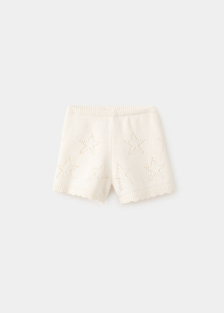 Confeccionado en 100% algodón, este diseño corto presenta un tejido de punto con estrellas caladas. La cintura y los bajos en canalé completan el total look, ofreciendo un estilo distintivo y cómodo