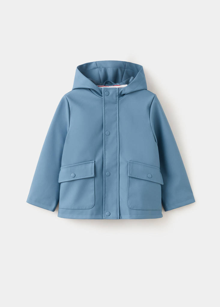 Tejido impermeable. Diseño recto. Cuello con capucha. Manga larga. Dos bolsillos frontales. Cierre oculto de cremallera. Forro interior. Cierre de botones en la parte delantera. Colección San Valentín.