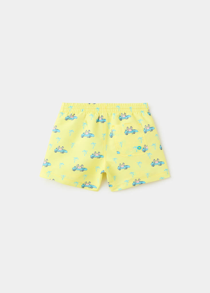 Tejido elástico. Diseño recto. Diseño corto. Diseño estampado. Estampado de cangrejos. Cintura elástica con cordón ajustable. Cordón en contraste. Dos bolsillos laterales. Colección baño.