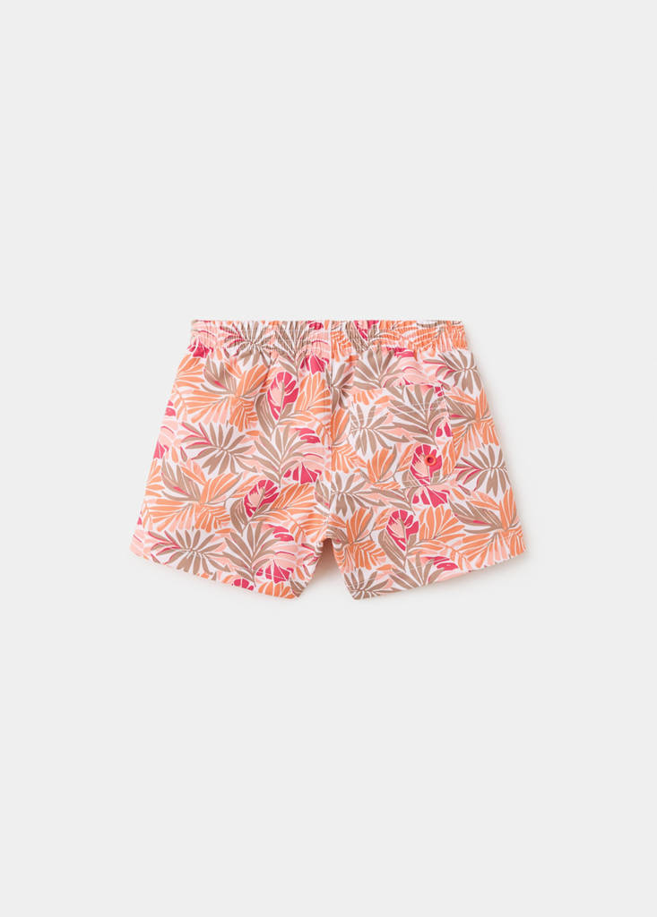 Tejido elástico. Diseño recto. Diseño estampado floral. Diseño multicolor. Cintura elástica con cordón ajustable. Cordón en contraste. Colección baño.