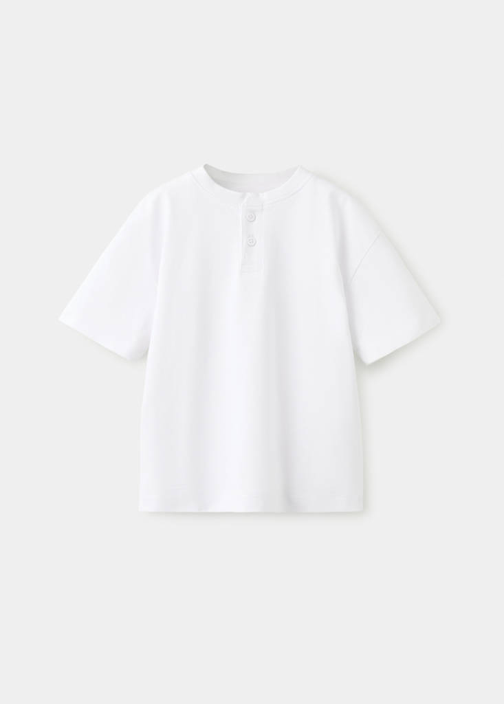 Camiseta algodón botonesPrecio actual [US$ 12,99 ]US$ 12,99Selecciona un colorBlancoSelecciona tu talla12-18 meses (86cm)18-24 meses (92cm)2-3 años (98cm)3-4 años (104cm)4-5 años (110cm)5-6 años (116cm)Guía de tallasAñadir a FavoritosVer lookEnvío gratis a tiendaVer disponibilidad en tiendaDescripciónTejido 100% algodón. Diseño recto. Cuello redondo con cierre de botones. Manga corta.Ver detallesCualidades del artículoAlgodón recicladoAl menos 20%Esta fibra se obtiene a partir de restos textiles pre y post consumo que se transforman en nuevos tejidos.Compartir
