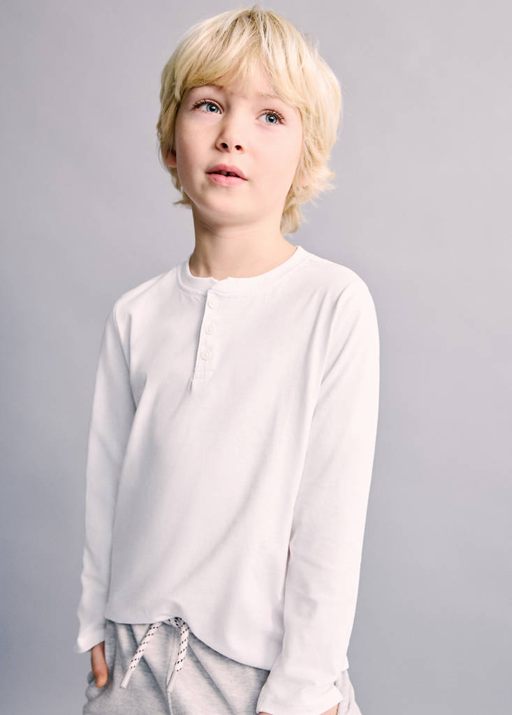 Camiseta algodón manga largaPrecio actual [US$ 11,99 ]US$ 11,99Selecciona un colorBlanco rotoSelecciona tu talla9-12 meses (80cm)12-18 meses (86cm)18-24 meses (92cm)2-3 años (98cm)3-4 años (104cm)4-5 años (110cm)5-6 años (116cm)Guía de tallasAñadir a FavoritosVer lookEnvío gratis a tiendaVer disponibilidad en tiendaDescripciónTejido 100% algodón. Diseño recto. Cuello redondo con cierre de botones. Manga larga. Back to school.Ver detallesCualidades del artículoAlgodón recicladoAl menos 20%Esta fibra se obtiene a partir de restos textiles pre y post consumo que se transforman en nuevos tejidos.Compartir
