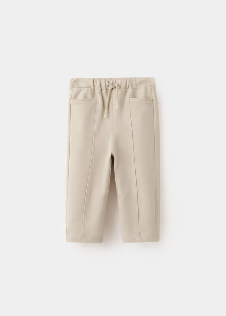 Tejido 100% algodón. Diseño recto. Diseño largo. Estilo jogger. Cintura elástica. Dos bolsillos frontales. Bolsillo de parche en la parte posterior. Cintura elástica con cordón. Detalle costuras.