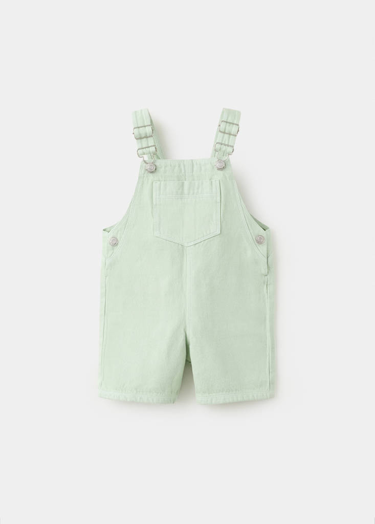 Tejido estilo tejano vaquero 100% algodón. Tirantes anchos. Hebillas ajustables. Bolsillo de parche en el pecho. Dos bolsillos de parche traseros.