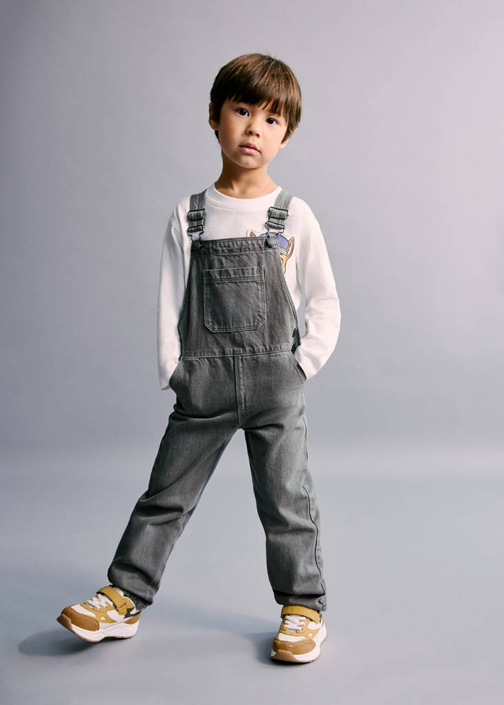 Tejido 100% algodón. Tejido vaquero. Diseño largo. Tirantes ajustables y cierre de ganchos en la parte posterior. Bolsillo parche delantero. Dos bolsillos laterales. Cierre de botón lateral.