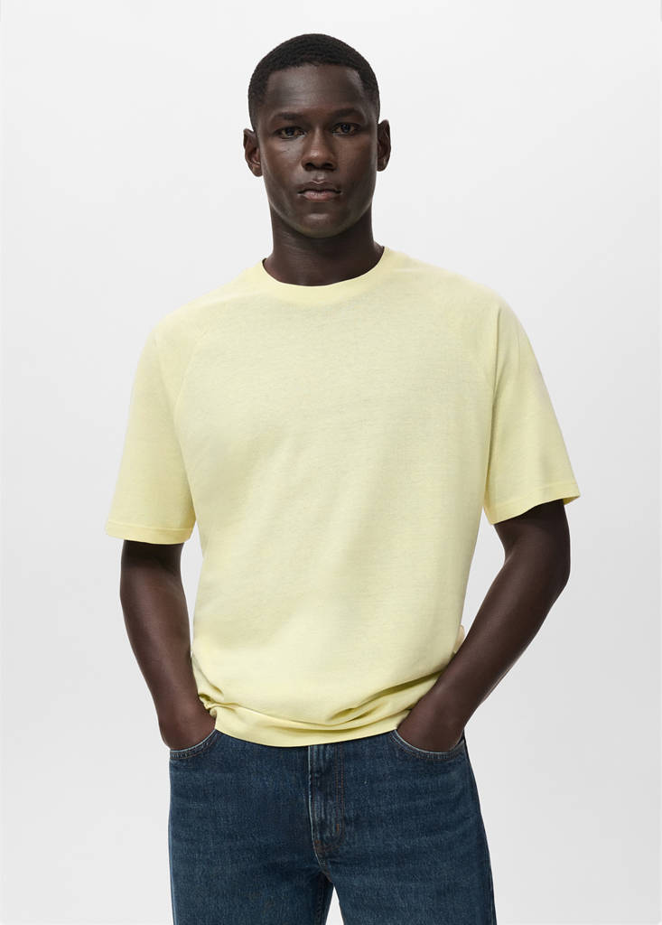 Camiseta algodón lino relaxed fitPrecio actual [US$ 35,99 ]US$ 35,99Selecciona un colorAmarillo flúorEl modelo lleva la talla M y mide 188cm.Selecciona tu tallaXSSMLXLXXLGuía de tallasAñadir a FavoritosVer lookEnvío gratis a tiendaVer disponibilidad en tiendaDescripciónRelaxed fit. Tejido mezcla de algodón y lino. Cuello redondo. Manga corta. Bajo recto.Ver detallesCompartir