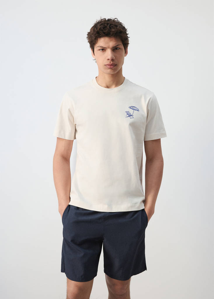 Regular fit. 100% Algodón. Cuello redondo. Manga corta. Dibujo en el lateral