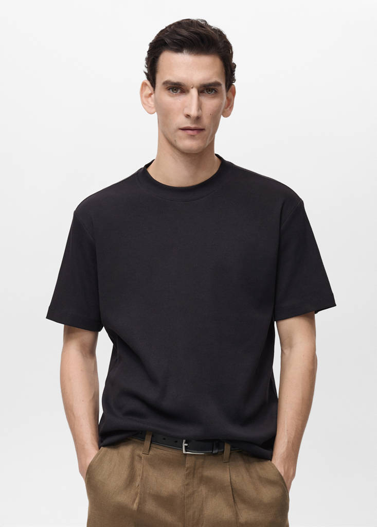 Camiseta algodón canale regular fitPrecio actual [US$ 39,99 ]US$ 39,99Selecciona un colorNegroEl modelo lleva la talla M y mide 188cm.Selecciona tu tallaXSSMLXLXXLMedidasAñadir a FavoritosVer lookEnvío gratis a tiendaTejido 96% algodón. Regular fit. Cuello redondo de canalé. Bajo rectoDetalles, composición y cuidadosDisponibilidad en tienda