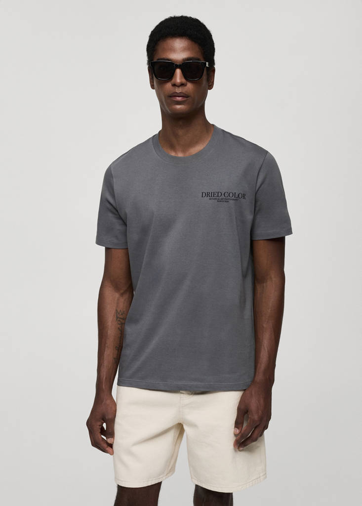 Slim fit. Cuello redondo acabado rib. Manga corta. Bajo recto con detalles pespunteados. Mensaje estampado en el pecho. Dibujo estampado con relieve en la parte posterior. Tejido 100% algodón