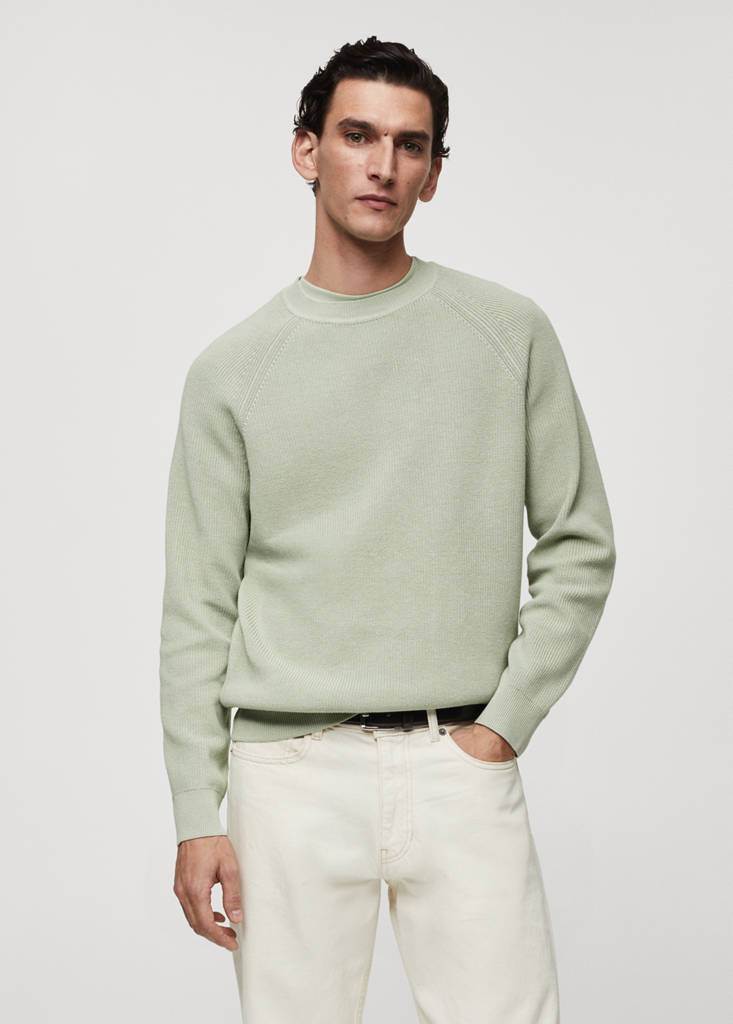 ESSENTIALS: Made to last. Los colores azul marino y khaki son excluviso online. Tejido de canalé. Cuello redondo. Manga larga ranglán. Diseño recto. Terminaciones a contraste de canalé en cuello, manga y bajo. Bajo recto