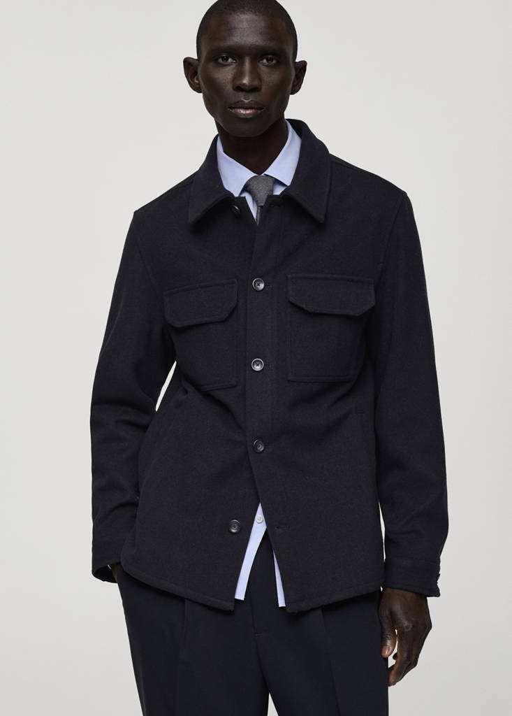 El color azul es exclusivo online. Tejido mezcla de lana. Regular fit. Tejido de franela. Cuello camisero. Cierre delantero con botones. Dos bolsillos de parche y solapa en el pecho. Manga larga con puños abotonados. Bajo recto. Cierre delantero. Diseño estándar. Manga larga. Tamaño mediano