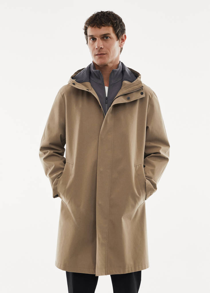 Colección Performance. Cierre delantero con cremallera y botones a presión. Capucha con cordón ajustable. Manga larga. Abertura en el bajo con cierre de botones. Bolsillo interior. El color azul es exclusivo online. Waterproof: Este acabado duradero impide que el agua atraviese el tejido, proporcionando la mejor protección posible contra la lluvia. Windproof: Este material duradero ofrece protección contra el viento para una mayor comodidad en el estilo de vida al aire libre. Breathable: Este tejido ayuda a regular la temperatura corporal al permitir que se libere la humedad
