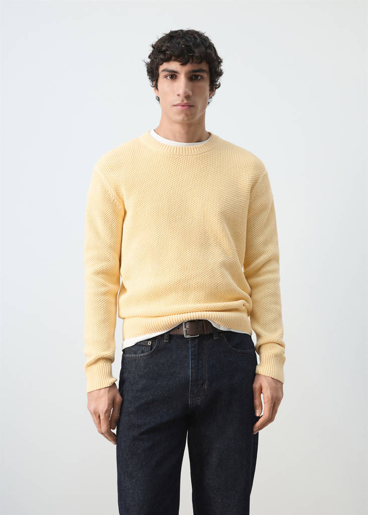 Jersey punto medio microestructuraPrecio actual [US$ 79,99 ]US$ 79,99Selecciona un colorAmarillo pastelEl modelo lleva la talla M y mide 185cm.Selecciona tu tallaSMLXLXXLGuía de tallasAñadir a FavoritosVer lookEnvío gratis a tiendaVer disponibilidad en tiendaDescripciónTejido de punto medio con microestructura. Tejido mezcla de algodón. Diseño recto. Cuello redondo. Terminaciones de canalé en cuello, manga y bajo.Ver detallesCompartir