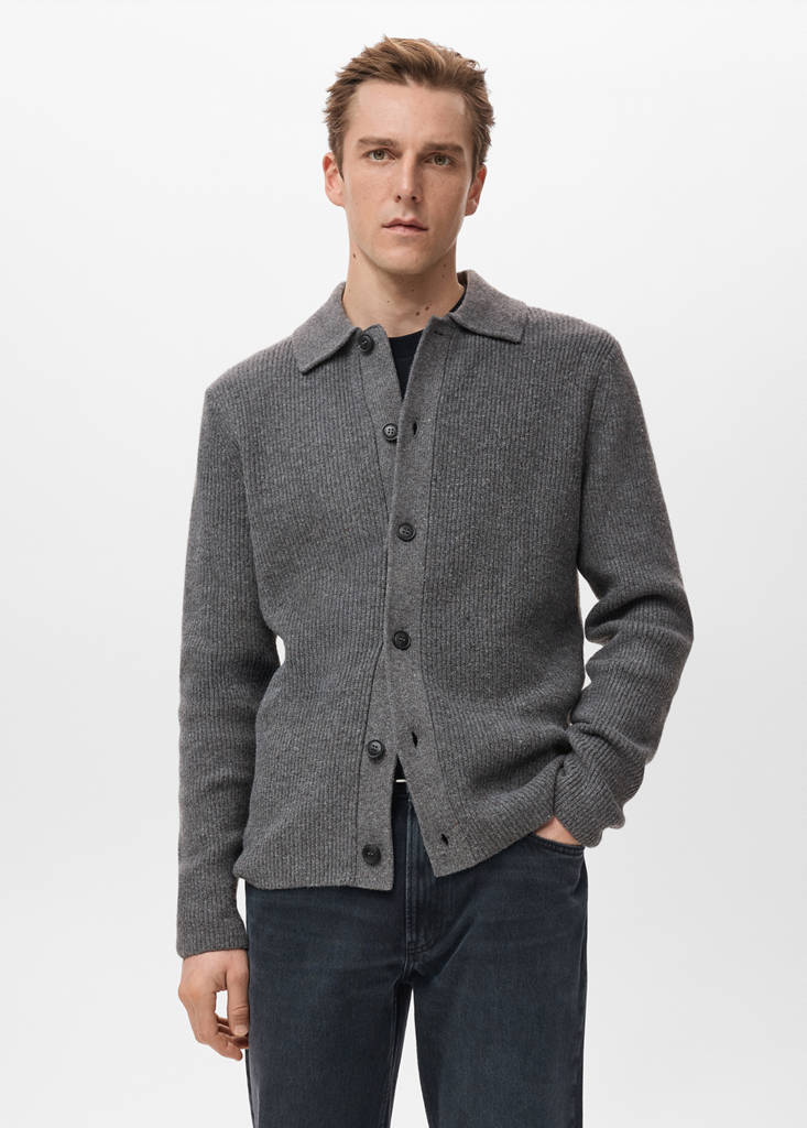Exclusivo onlineCárdigan punto canaléPrecio actual [US$ 99,99 ]US$ 99,99Selecciona un colorGris medio vigoréEl modelo lleva la talla M y mide 185cm.Selecciona tu tallaSMLXLXXLGuía de tallasAñadir a FavoritosVer lookEnvío gratis a tiendaVer disponibilidad en tiendaDescripciónExclusivo Online. Tejido mezcla de lana. Diseño canalé. Regular fit. Cuello polo. Manga larga. Cierre delantero con botones.Ver detallesCompartir