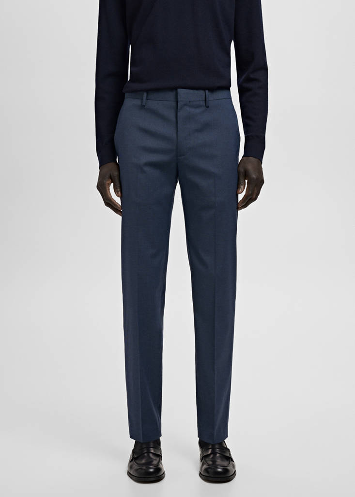 Super slim fit. Dos bolsillos laterales. Trabillas para cinturón. Cierre delantero con cremallera y botones ocultos. Dos bolsillos de ribete y botón en la parte posterior. Detalle de raya planchada en la parte delantera y trasera.