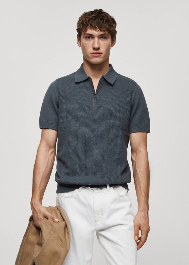 Polo punto algodón cremalleraPrecio actual [US$ 49,99 ]US$ 49,99Selecciona un colorGris medioEl modelo lleva la talla M y mide 189cm.Selecciona tu tallaSMLXLXXLMedidasAñadir a FavoritosVer lookEnvío gratis a tiendaTejido mezcla de algodón. Tejido de punto fino. Cuello polo con cierre de cremallera. Manga corta. Bajo recto. Terminaciones de canalé en cuello, manga y bajoDetalles, composición y cuidadosDisponibilidad en tienda