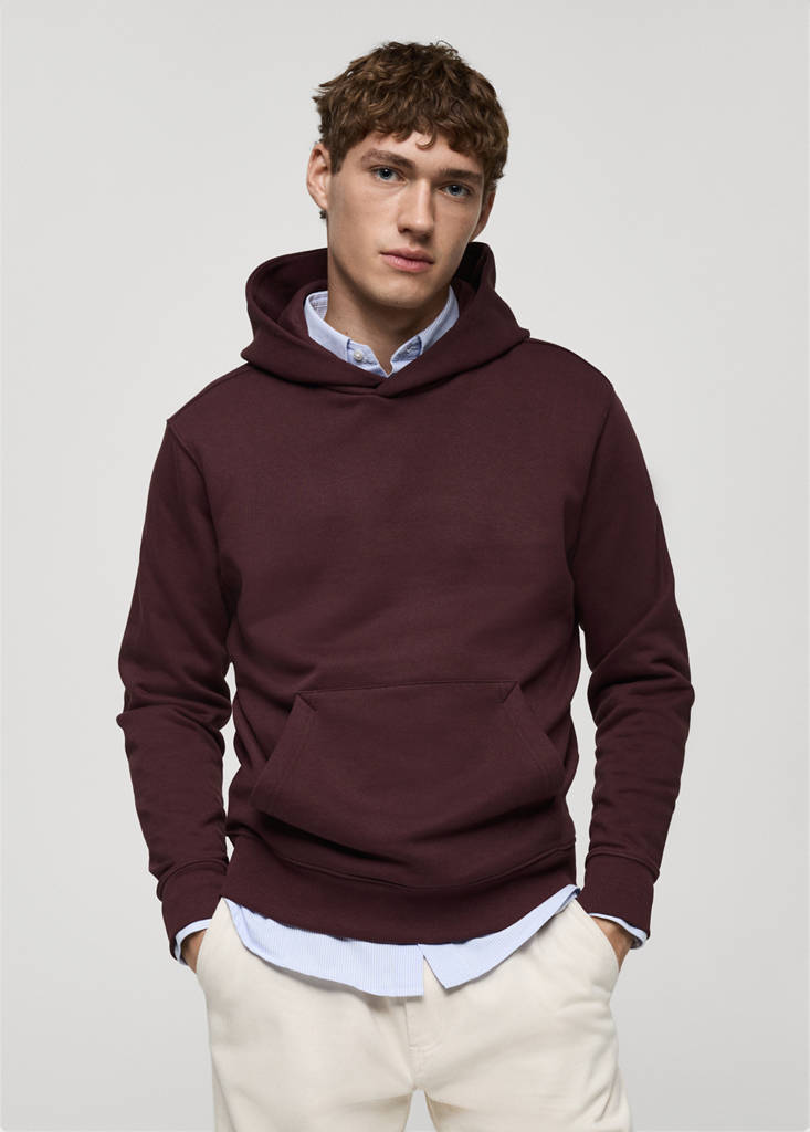 Regular fit. Tejido mezcla de algodón. Interior de algodón perchado efecto cálido. Con capucha. Puños y bajo acabados en rib. Bajo recto. El color granate es Exclusivo Online. El color negro es exclusivo online. Bolsillo canguro. Manga larga con puños elásticos. Terminaciones en canalé en manga y bajo