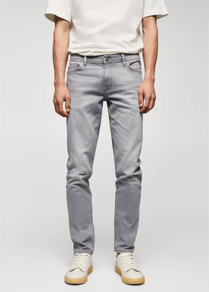 Colección Básicos, slim fit, tejido mezcla de algodón sostenible, trabillas, dos bolsillos laterales, bolsillo portamonedas, dos bolsillos de parche en la parte posterior, cierre de cremallera y botón, el modelo mide 185 cm y lleva una talla 42, el modelo mide 180 cm y lleva una talla 42, estilo tejano vaquero.